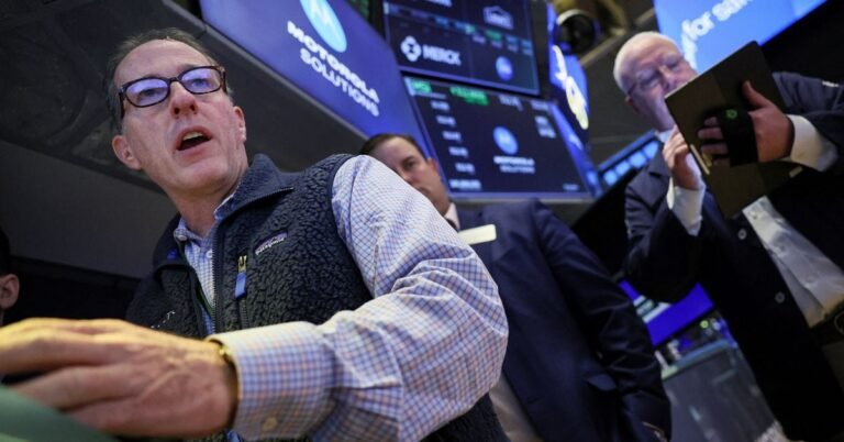 Merchants work on the ground on the New York Inventory Trade (NYSE) in New York Metropolis, U.S., November 15, 2023. REUTERS/Brendan McDermid/File Picture Purchase Licensing Rights