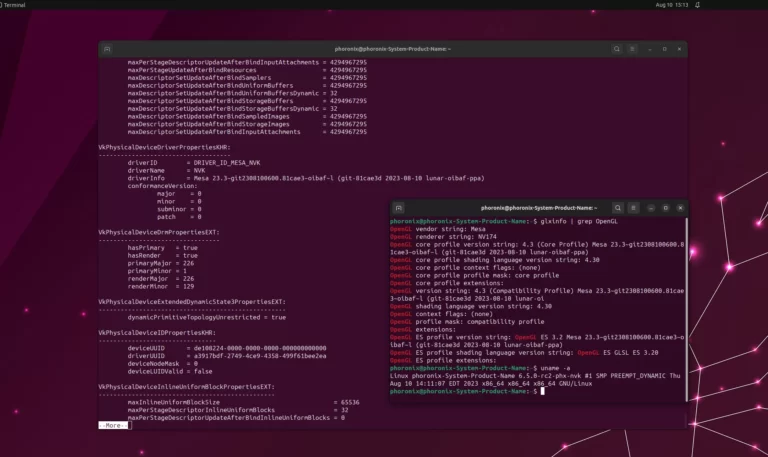 Mesa 23.3 brings many thrilling open-source OpenGL and Vulkan driver new extensions, options, expanded {hardware} assist, and different enhancements. Most notably it merged the NVK Vulkan driver because the experimental open-source NVIDIA Vulkan driver that may work on Linux 6.6+ and is the very first open-source NVIDIA Vulkan driver. However do not count on nice efficiency but — the NAK Rust-written shader compiler continues to be within the works and the NVIDIA GSP firmware assist has but to be queued for the mainline Nouveau DRM kernel driver… The GSP firmware assist and re-clocking did not make it into DRM-Subsequent forward of the upcoming Linux 6.7 merge window, so it will not be till into 2024 earlier than doubtlessly having considerably “okay” NVIDIA open-source graphics efficiency with Nouveau/NVK.