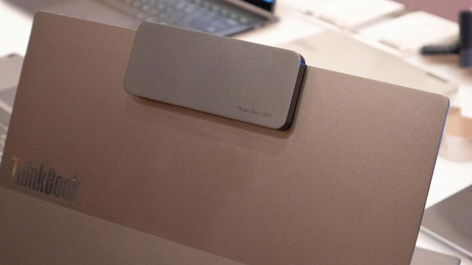 Lenovo is rising the vary of equipment that may be magnetically connected to its ThinkBook laptops—and that might quickly embody SSDs and second screens.