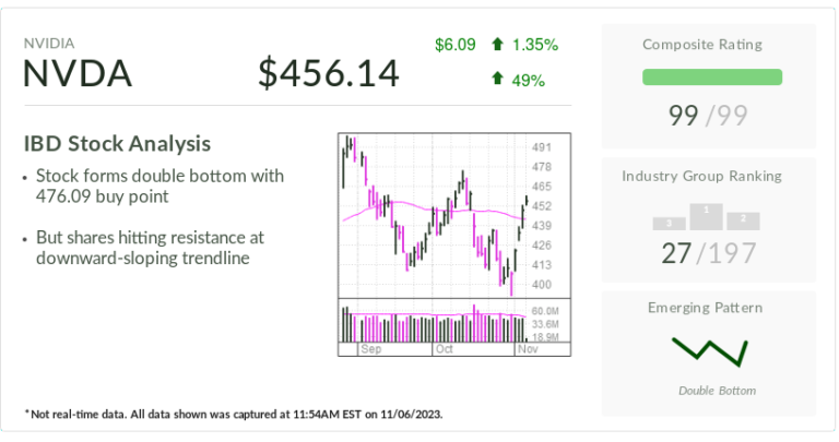 Nvidia inventory has fashioned a double-bottom base with a purchase level of 476.09, in accordance with IBD MarketSmith charts. In optimistic information for shares, Nvidia has risen above its 50-day shifting common line.
