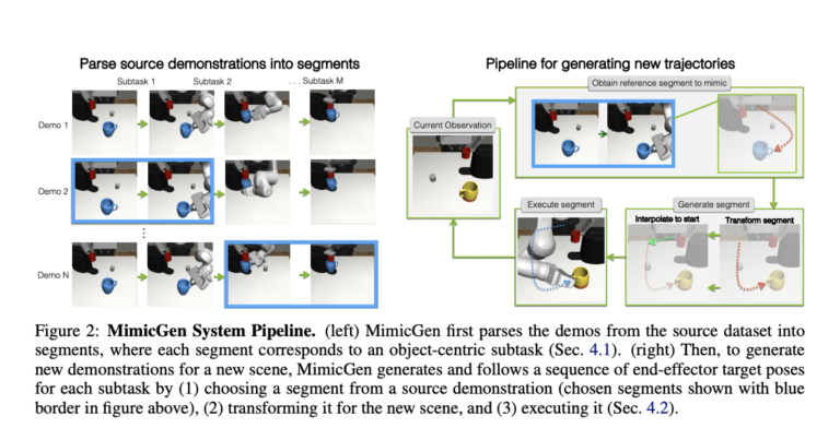 • Researchers from NVIDIA and UT Austin current MimicGen, a expertise that makes use of new scenario adaptation to create huge, diversified datasets from a restricted variety of human demos.