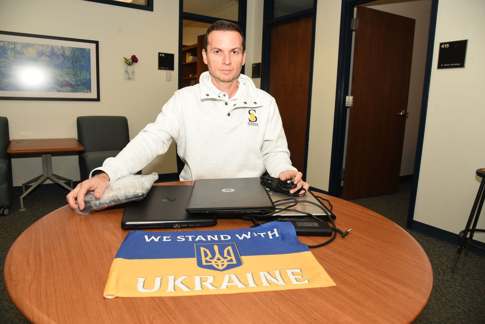 To assist, a Ukrainian Siena School professor is organizing a used laptop computer donation drive.